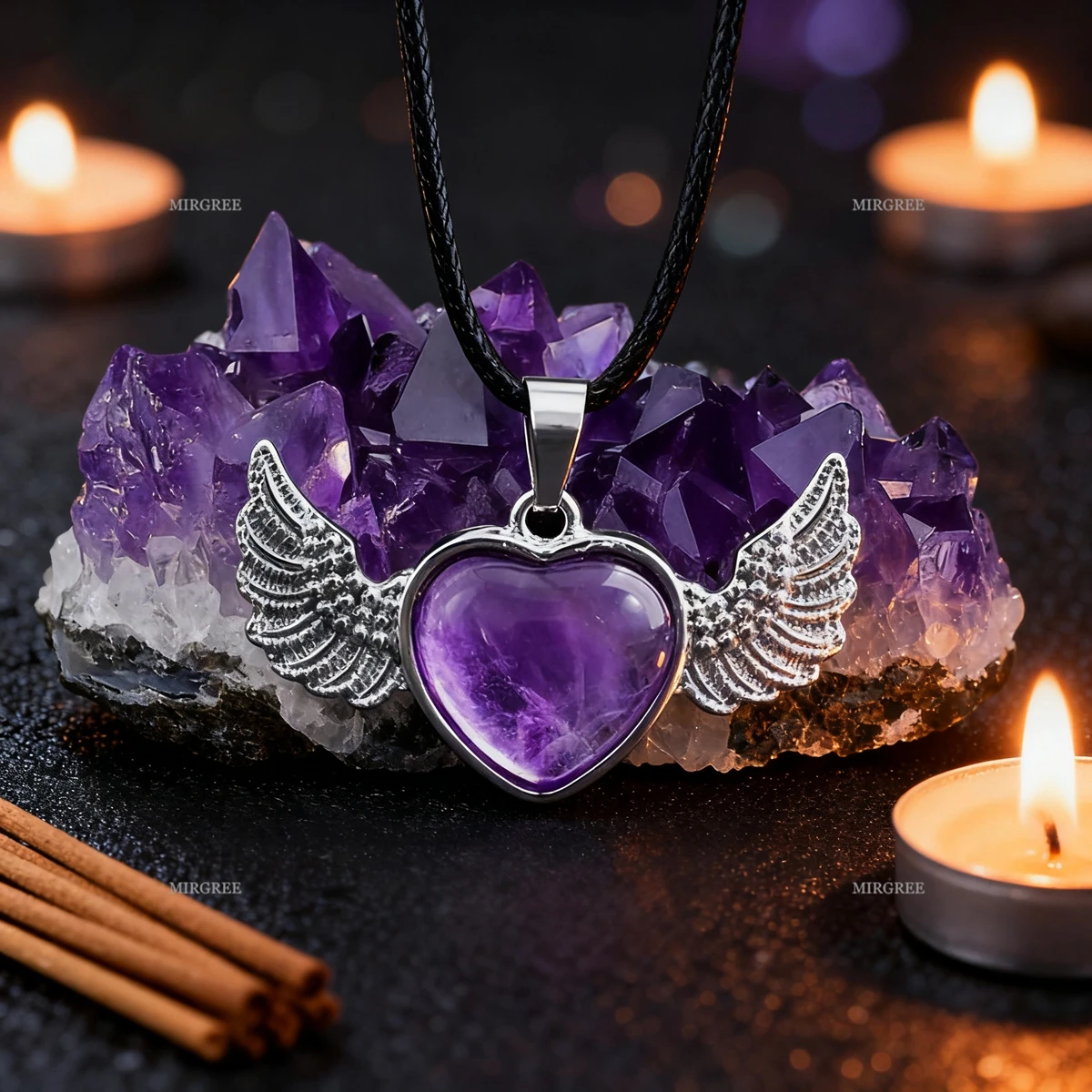 2 Stück herzförmige Amethyst-Halskette...