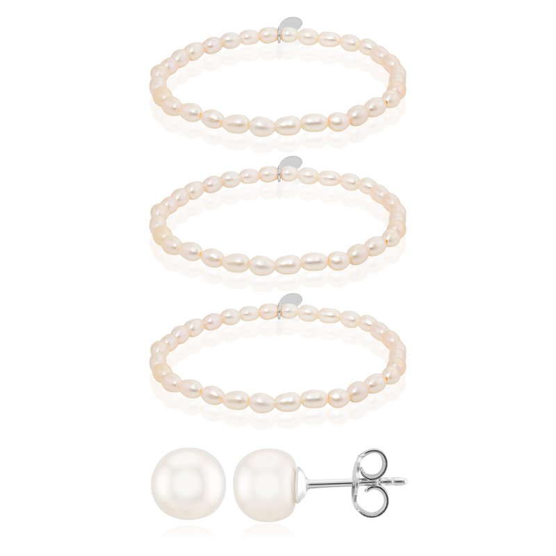 Weiße Süßwasserzuchtperlen-Silberset ...